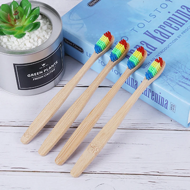 Cashback Hot 1/4 Pcs Toothbrush Bamboo Wooden Handle Rainbow Soft Bristle Oral Care Tooth Brush for Adult Ch