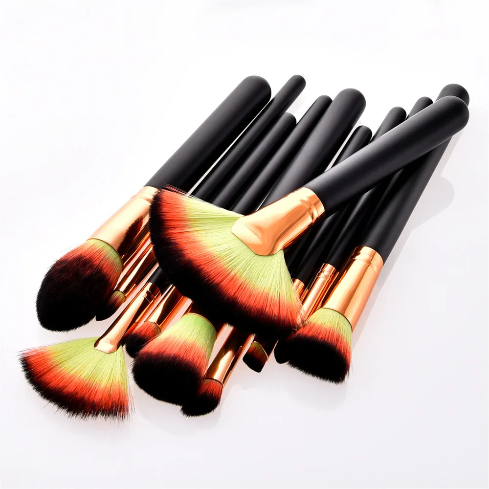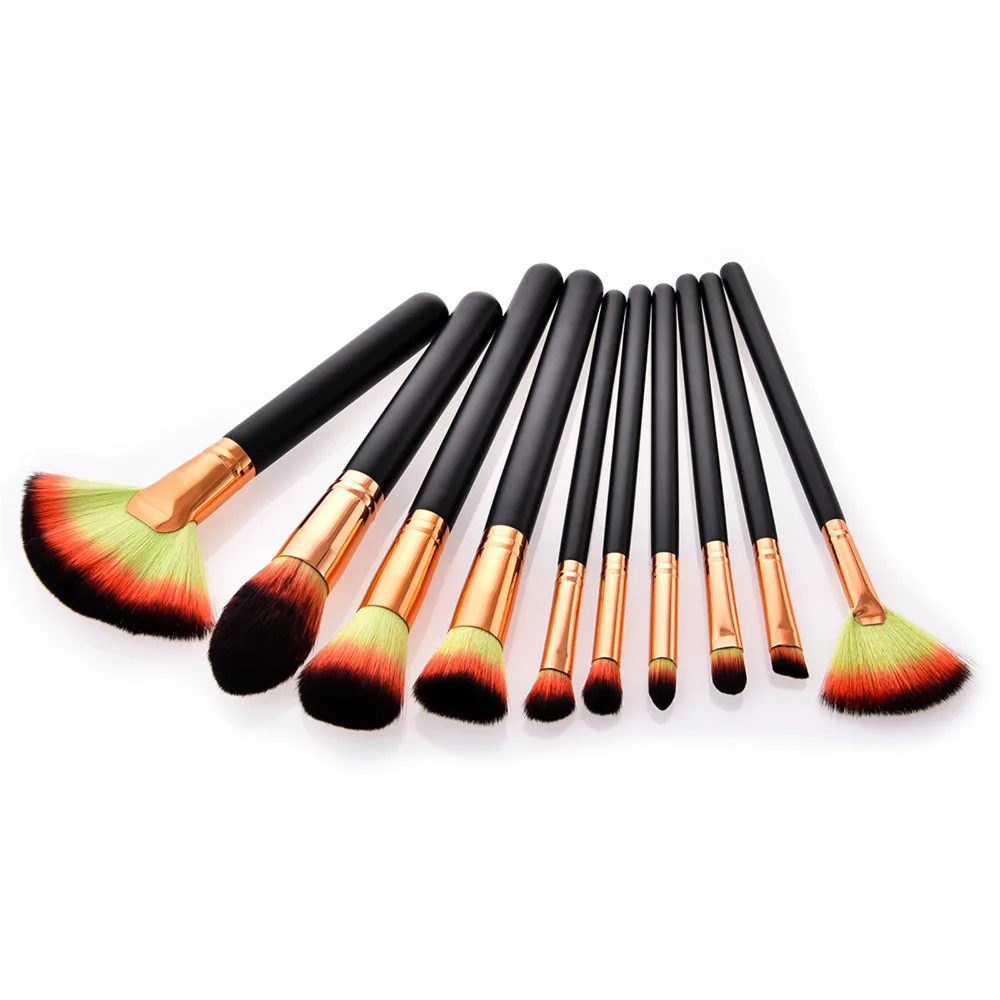 Price 10Pcs/Set Rainbow Hair Makeup Brushes Set Fan Brush Eyeshadow Foundation Powder Cosmetic Blending M