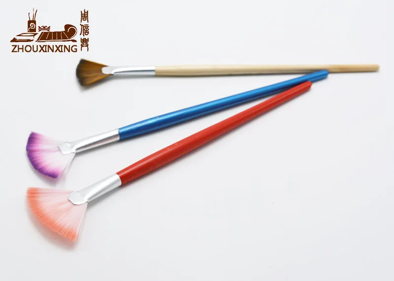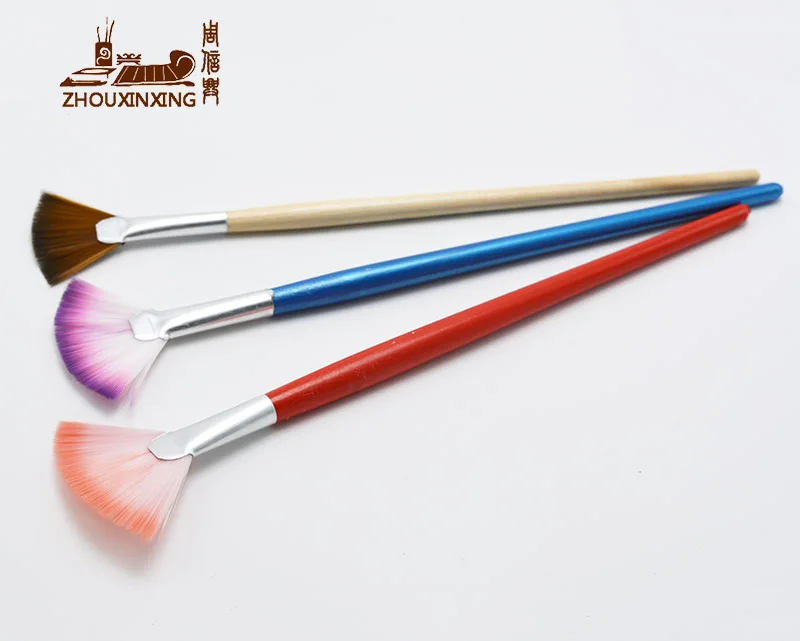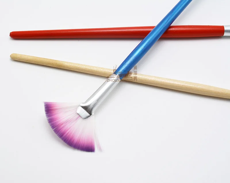 Pre-owned 3pcs/Set Fan-shaped rainbow nylon hair brush short wood painting crafts for kids painting drawing a
